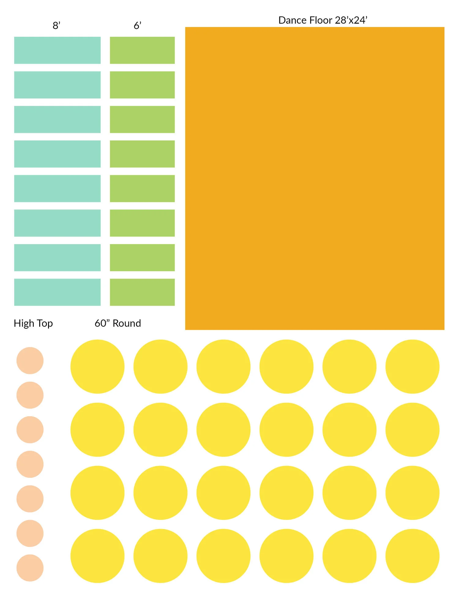 8" x 8" (40'x40' tent) - Lay the cutouts on the poster and try various layouts